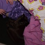 Når man er en syg pige, der keder sig – så er der i øvrigt ikke noget bedre, end når katten kryber ind under dynen og trøster. Det er så hyggeligt at se.